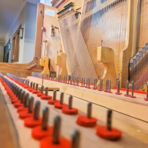 O século XVIII também foi um período de experimentação com materiais na construção do piano. Madeira de alta qualidade, como o nogue, tornou-se popular para a fabricação de gabinetes, enquanto os componentes internos, como cordas e mecânicas, começaram a ser feitos com metais mais duráveis, oferecendo uma sonoridade mais potente e clara. Além disso, as técnicas de fabricação evoluíram, com a introdução de acabamentos refinados e meticulosos, aumentando a estética do instrumento e a qualidade sonora.